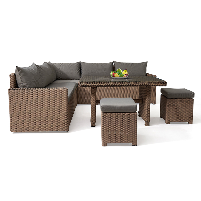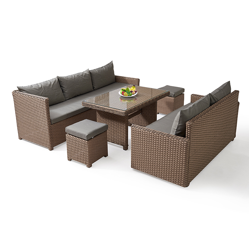 Tüm Hava Durumu Bahçe Bistro Kamış Seti Metal Açık Büyük Rattan Mobilya Veranda Hasır Kanepe